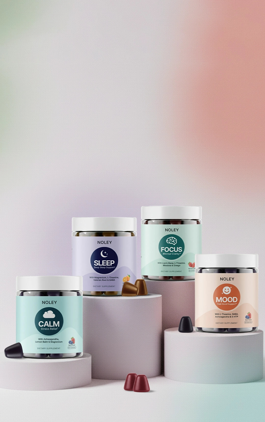 A full-day system: Focus supports clear concentration, Mood supports a positive, balanced mood, Calm supports relaxed composure, and Sleep supports a gentle, melatonin-free wind-down.*